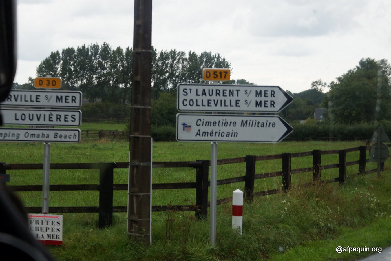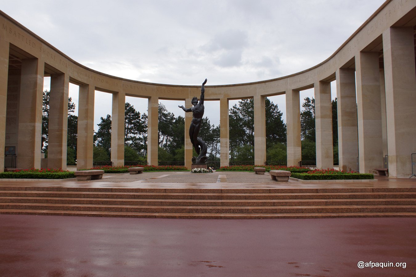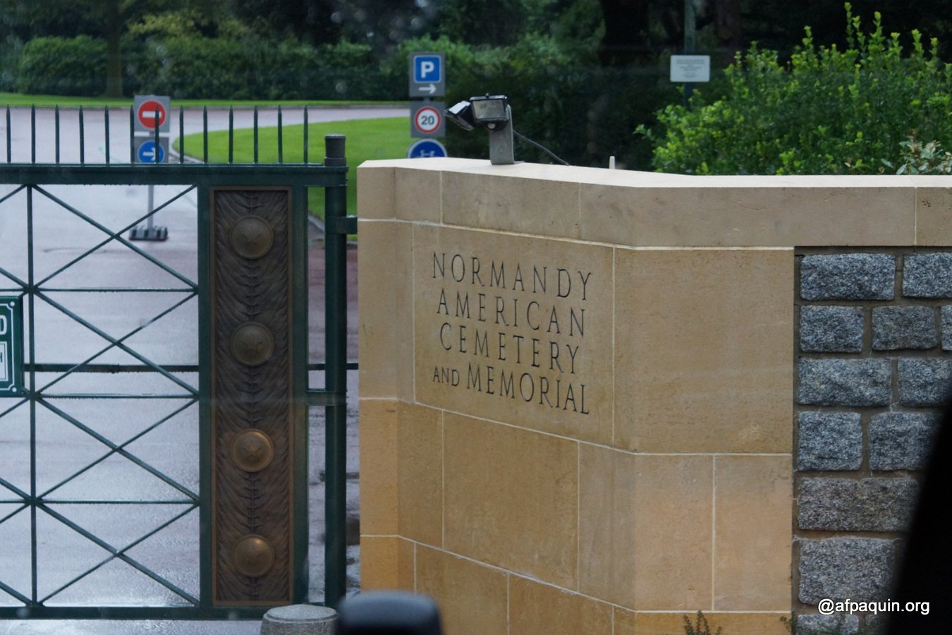 Départ pour Omaha Beach ainsi que le cimetière américain de Colleville sur Mer qui la domine, 9387 sépultures y sont regroupées sur 70 hectares. Son monument commémoratif résume l’opération « Overlord » et la Bataille de Normandie. Lla Bataille de Normandie. 2015-09-032015-09-05