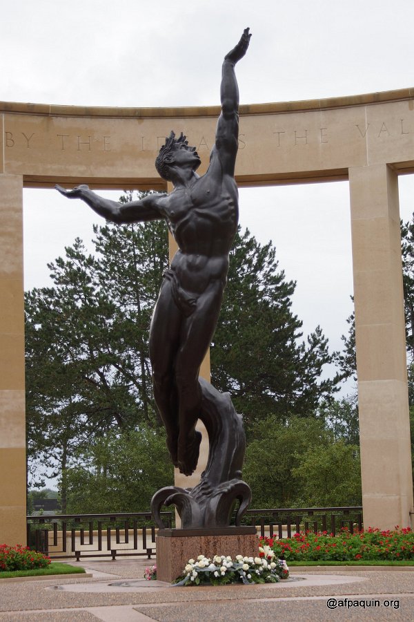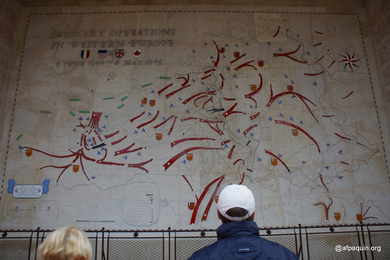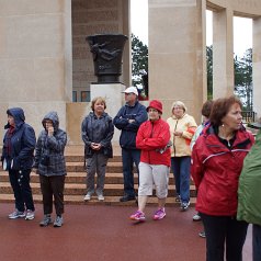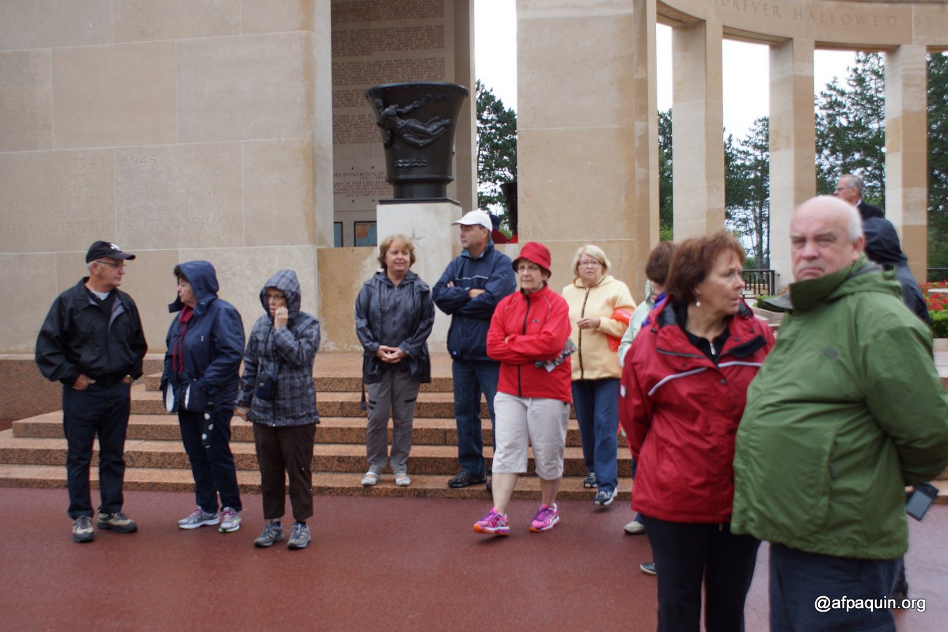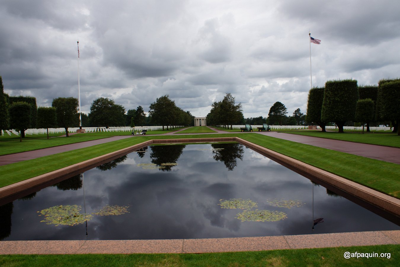 Départ pour Omaha Beach ainsi que le cimetière américain de Colleville sur Mer qui la domine, 9387 sépultures y sont regroupées sur 70 hectares. Son monument commémoratif résume l’opération « Overlord » et la Bataille de Normandie. Lla Bataille de Normandie. 2015-09-032015-09-05