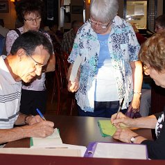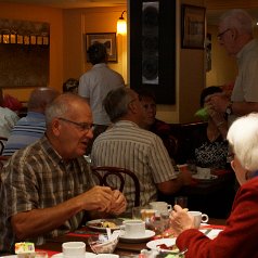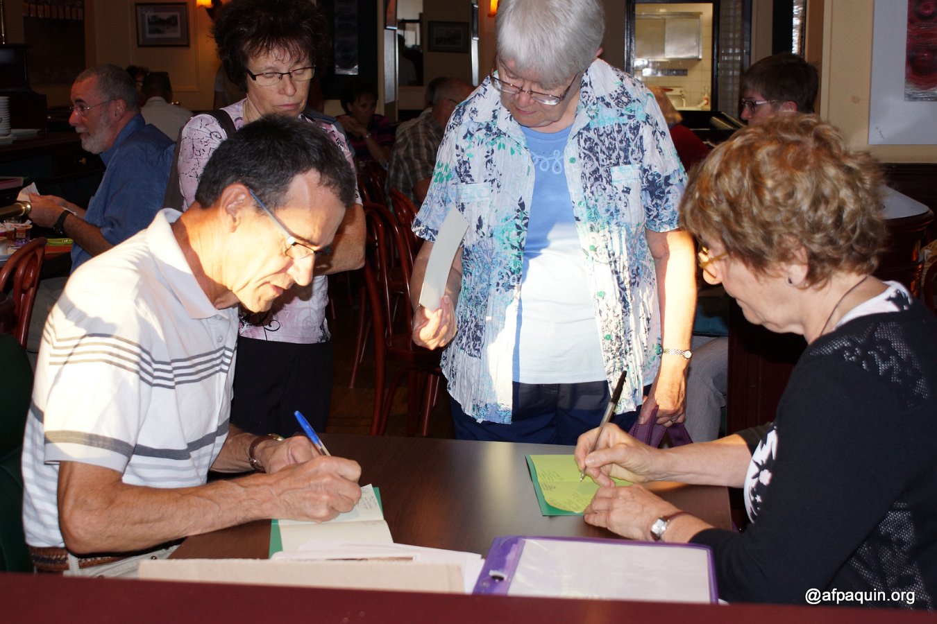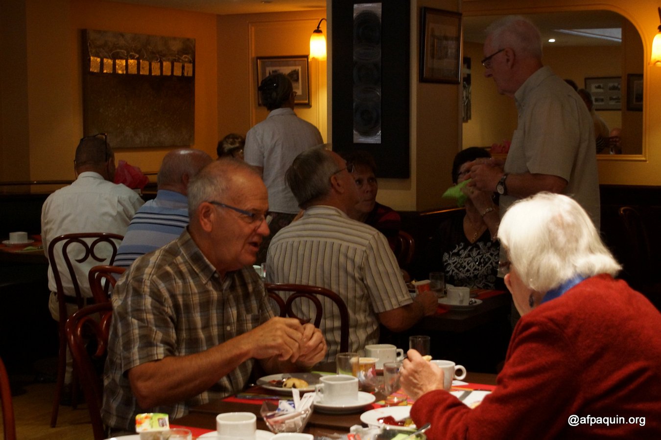 Petit-déjeuner À l'initiative de Marie-Andrée qui a brodé deux magnifiques cartes, une qu'elle conservera et l'autre qu'elle nous donnera à Gaby et moi Le grand jour est arrivé. Je suis un peu nerveux. Nous y voilà. J'ai attendu 30 ans ce moment. 2015-09-042015-09-06