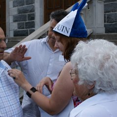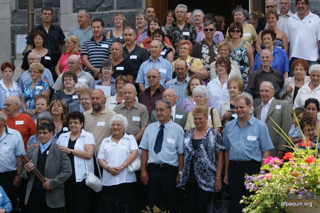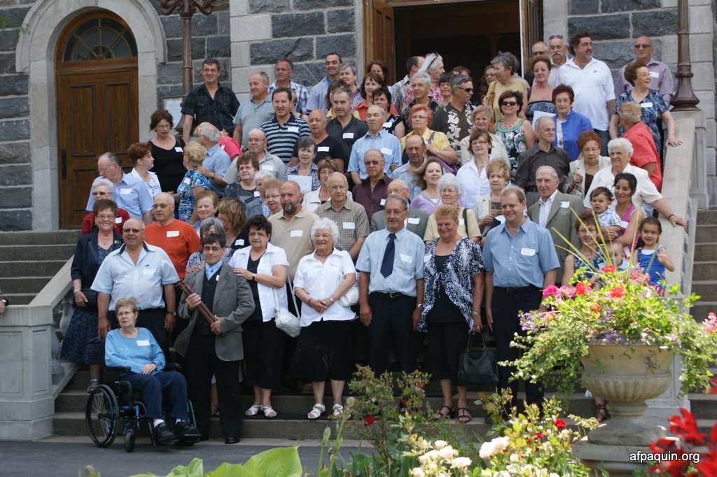Fête familialeLe groupe était formé de 308 personnes comprenant les descendants (petits-enfants, arrière petits-enfants etc.) du couple Jeanne Lavigne et Arsène Paquin ainsi que les descendants de leurs frères et soeurs, voisins, amis de la famille, et anciennes enseignantes.