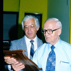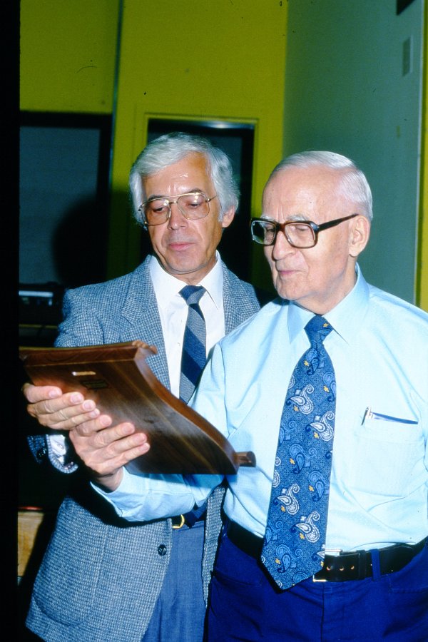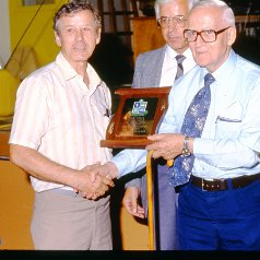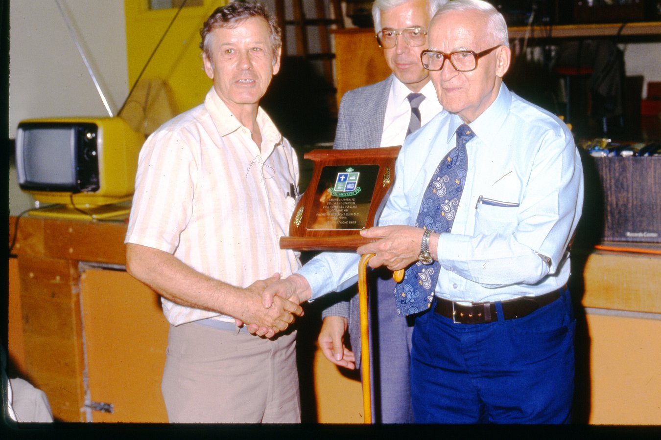 Gérard Paquin remet au 1er récipiendaire de l'Ordre du Mérite, le Frère Pasteur, président-fondateur de l'AFP, la plaque-souvenir, témoignage de gratitude de…