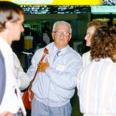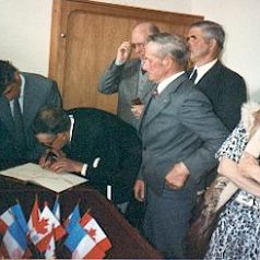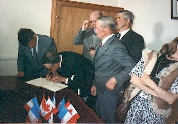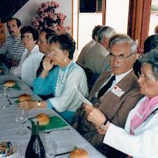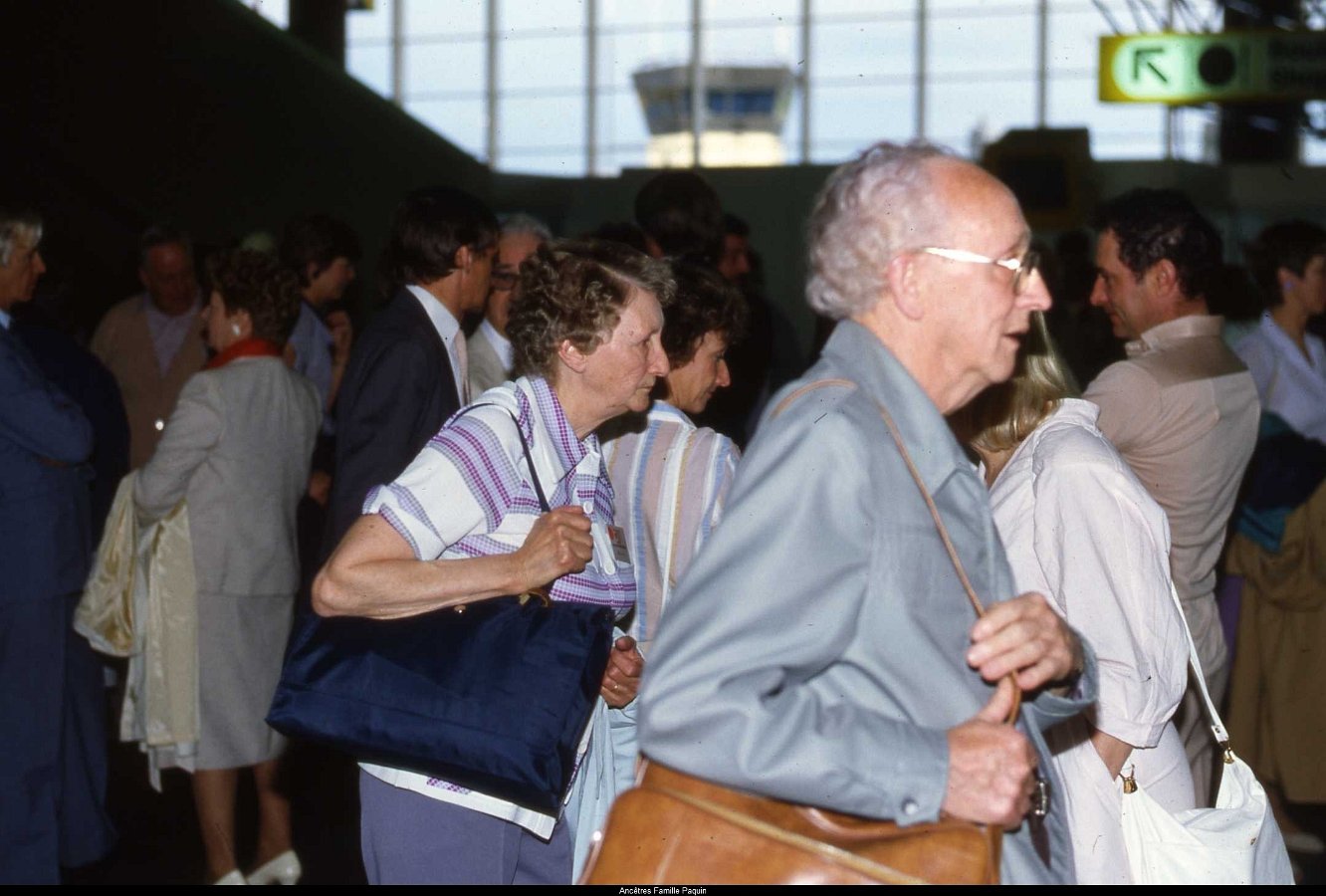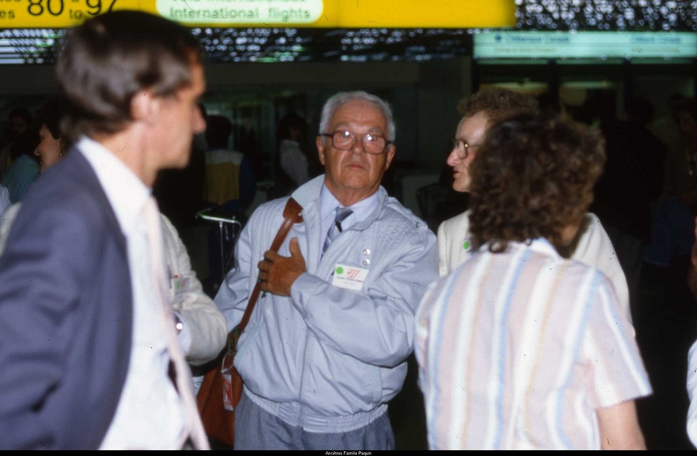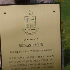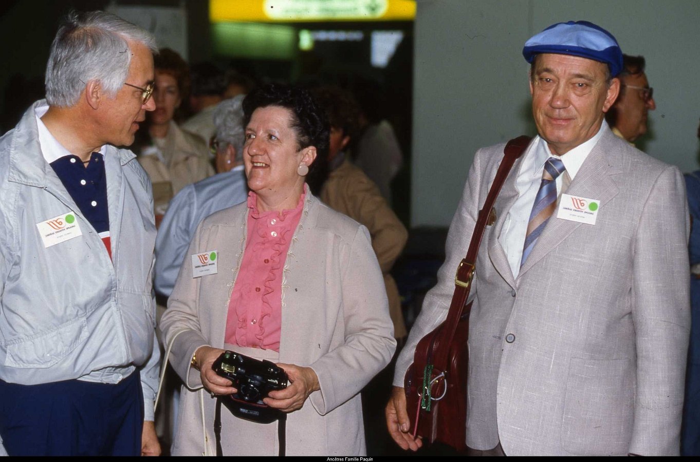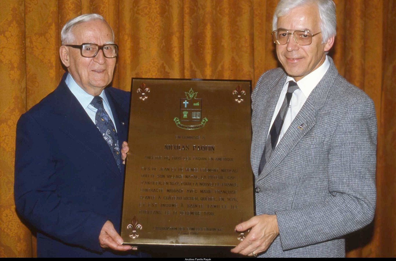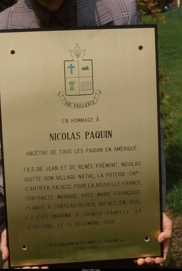 Mon père, Paul Paquin, porte fièrement la plaque qui est maintenant dans l'église de notre ancêtre à La Poterie Pasteur Paquin et Charles-Henri Paquin Départ à L'aéroport de Mirabel, au premier plan Angéline Mayrand et Pierre Paquin Donat Paquin Signature du Livre d'Or de la Commune de La Poterie par les Paquin d'Amérique (Photo Gérard et Michèle Paquin de Montrouge, France) 1985 - Drummondville1986 - Abitibi