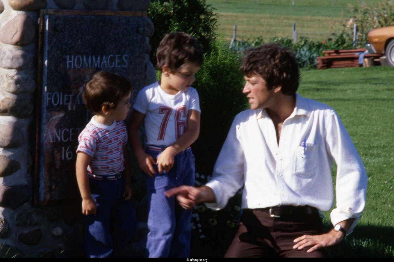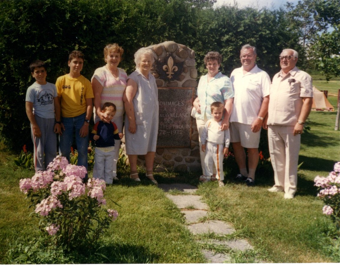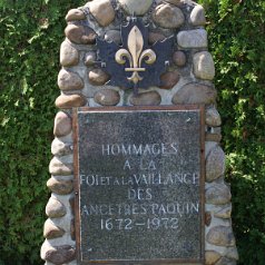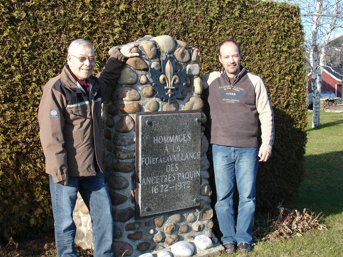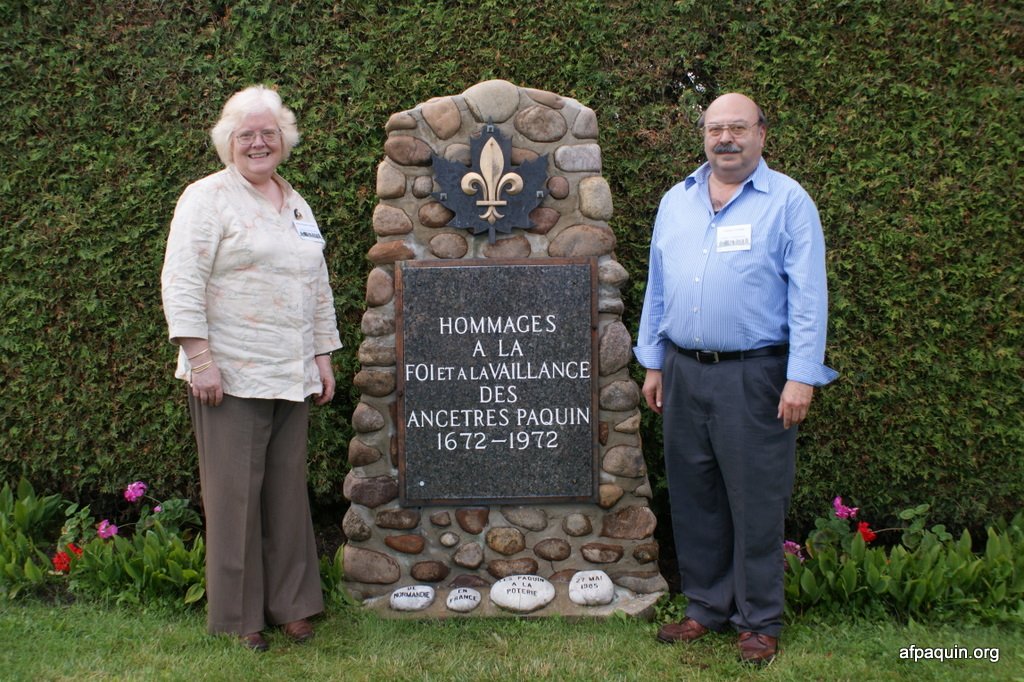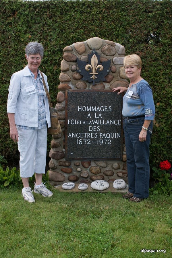 Hommages à nos ancêtresLe monument en 2007 Bastien Paquin / Maurice Paquin / Rémi Paquin Réjean Paquin et son fils Jean-Marie Paquin et Claude Paquin Nicole et Denise Paquin Alice Paquin / Clayton Carlisle en 2009 Jean-Paul et Jean-Marie Paquin Roland Pequin / Cody / Danielle / Bradley Jean-Paul Paquin / Ghislaine Charette Intégration à la base du monument des pierres reçu de FranceRéparation du monument